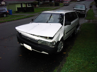 So everyone is fine Elliott seems to be more upset that now he has to get a new different car and has no money for this. I am so gald that I color my hair blonde so I don't have to see the gray hairs getting white. Hummmmm maybe a few things like this happen I won't need the hair color but I think I like going to the hair dresser she gives a great shamppoo. Thank You Angels I love you for keeping my boys safe.